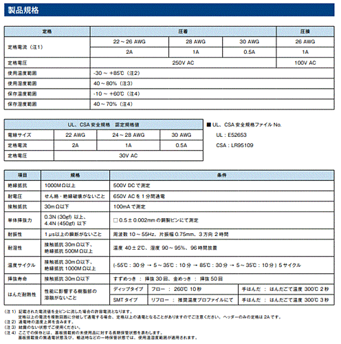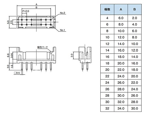 コネクタ形状:ヘッダー 安全規格:C-UL/CSA UL 極数:10 列数(嵌合部):2 実装ピッチ:2.0 mm開口部ピッチ:2.0 mm 本体長さ(ピッチ方向):12.0 mm 本体幅(奥行き):5.0 mm 本体高さ:6.6 mm 基板実装方法:スルーホールDIP 基板実装スタイル:スタンダード オンボード 推奨基板厚:1.6 mm Max.開口部方向:ストレート 挿抜回数:50 接点部めっき:金 めっき厚:0.2 μm ハウジング色:黒 使用温度範囲 Min.:-40 ℃ 使用温度範囲 Max.:85 ℃ 定格電流:2.0 A 定格電圧(AC):AC 250.0 V 定格電圧(DC):DC 250.0 V 接触抵抗:30.0 mΩ Max. 耐電圧:650 V Max. ロック方式:簡易ロック 【カタログ】基本スペック等 https://www.hirose.com/ja/product/document?clcode=&productname=&series=DF11&documenttype=Catalog&lang=ja&documentid=D31688_ja ●1パック100個入(単価:36.8円/個) ※写真はイメージです。