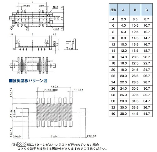 コネクタ形状:ヘッダー 安全規格:C-UL/CSA UL 極数:14 列数(嵌合部):2 実装ピッチ:2.0 mm開口部ピッチ:2.0 mm 本体長さ(ピッチ方向):21.5 mm 本体幅(奥行き):9.2 mm 本体高さ:7.2 mm 基板実装方法:SMT 基板実装スタイル:スタンダード オンボード 開口部方向:ストレート 挿抜回数:30 接点部めっき:錫 めっき厚:1.0 μm ハウジング色:ベージュ 使用温度範囲 Min.:-40 ℃ 使用温度範囲 Max.:85 ℃ 定格電流:2.0 A 定格電圧(AC):AC 250.0 V 定格電圧(DC):DC 250.0 V 接触抵抗:30.0 mΩ Max. 耐電圧:650 V Max. ロック方式:簡易ロック 【カタログ】基本スペック等 https://www.hirose.com/ja/product/document?clcode=&productname=&series=DF11&documenttype=Catalog&lang=ja&documentid=D31688_ja ●1リール500個入(単価:60円/個) ※写真はイメージです。