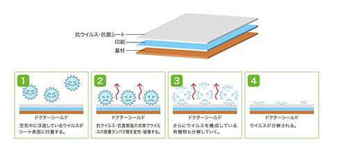 ●貼るだけ簡単 ウイルス・菌 除去シート 「ウイルス・菌」の手からの感染リスクを軽減! 手すり、スイッチ、ドアハンドル・レバー等の表面に貼り付けて使用する 抗ウイルス機能を有するシートです。 【特長】 ・抗ウイルス&菌効果 代表的な”ウイルス・菌”について99%ウイルス・細菌の増殖を抑制します。(1時間~24時間後) ・防汚性 汚れが付きにくく、落としやすい ・高耐久 傷がつきにくく、耐摩耗性に優れる ・長寿命 耐用年数約10年 【仕様】 ・色 木目 ・材質 シート層:抗ウイルス性剤(USA FDA適合品)含有塩化ビニール樹脂 粘着剤:アクリル系粘着剤 ・厚さ 1mm ・サイズ 100mm×290mm ・入数 2枚 ・個装サイズ 120×325×3mm ・重量 45g 【ご使用上の注意】 ・本製品を使用することで、すべての感染症対策になるわけではありません。衛生的な環境を維持するためのひとつのアイテムとしてご使用ください。人体に影響を及ぼす可能性のある代表的な細菌、ウイルスで性能を確認しており、他の細菌、ウイルスに対しても効果が期待できます。 ・フッ素系樹脂やシリコン等には貼り付け不可です。 ・室内用途向けの設計の為、室外・半室外での用途には使用しないでください。 ・連続高温(60℃)以上での環境、また擦り傷の原因になるようなものを置く用途には使用しないでください。 ・プリント合板など表面が弱い素材や塗装面に使用する場合、剥がす時に素材を痛める場合があります。 ・角の部分や異形状部分に貼る場合、シートの反発により剥がれてくる場合があります。貼り付けの際は、しっかりと圧力をかけてシートを密着させてください。 ・保管の際は、直射日光や紫外線の当たらない場所に保管してください。 ・シート表面にワックスの塗布、各種印刷・コーティング、シールなどを施行しないでください。(抗ウイルス・抗菌効果を発揮できません。)又、画鋲のようなキズのつくものは使用しないでください。(破損する恐れがあります。) ・表面に付着した汚れを落とす場合は、水拭きまたは薄めた中性洗剤をご使用ください。(アルコール・次亜塩素酸で拭いても問題ありません。)溶剤などは使用しないでください。ホコリ・油膜などが表面を覆った場合は、十分な性能効果を発揮しませんので、日常のお手入れで取り除いてください。 ・本製品に記載の数値や表現は測定結果によるものであり、保証性能ではございません。また抗ウイルス・抗菌効果は、シートに付着したウイルス・細菌に対して増殖を抑制するものであり、感染を直接阻止するものではありません。 ・本製品を使用して発生した破損やトラブル・感染症には一切責任を負いませんのであらかじめご了承ください。 ※写真はイメージです。 ※在庫切れの場合は別途御相談させて頂きます。 ※RoHS対応状況:製品ごとに異なりますのでメーカーホームページより御確認ください。