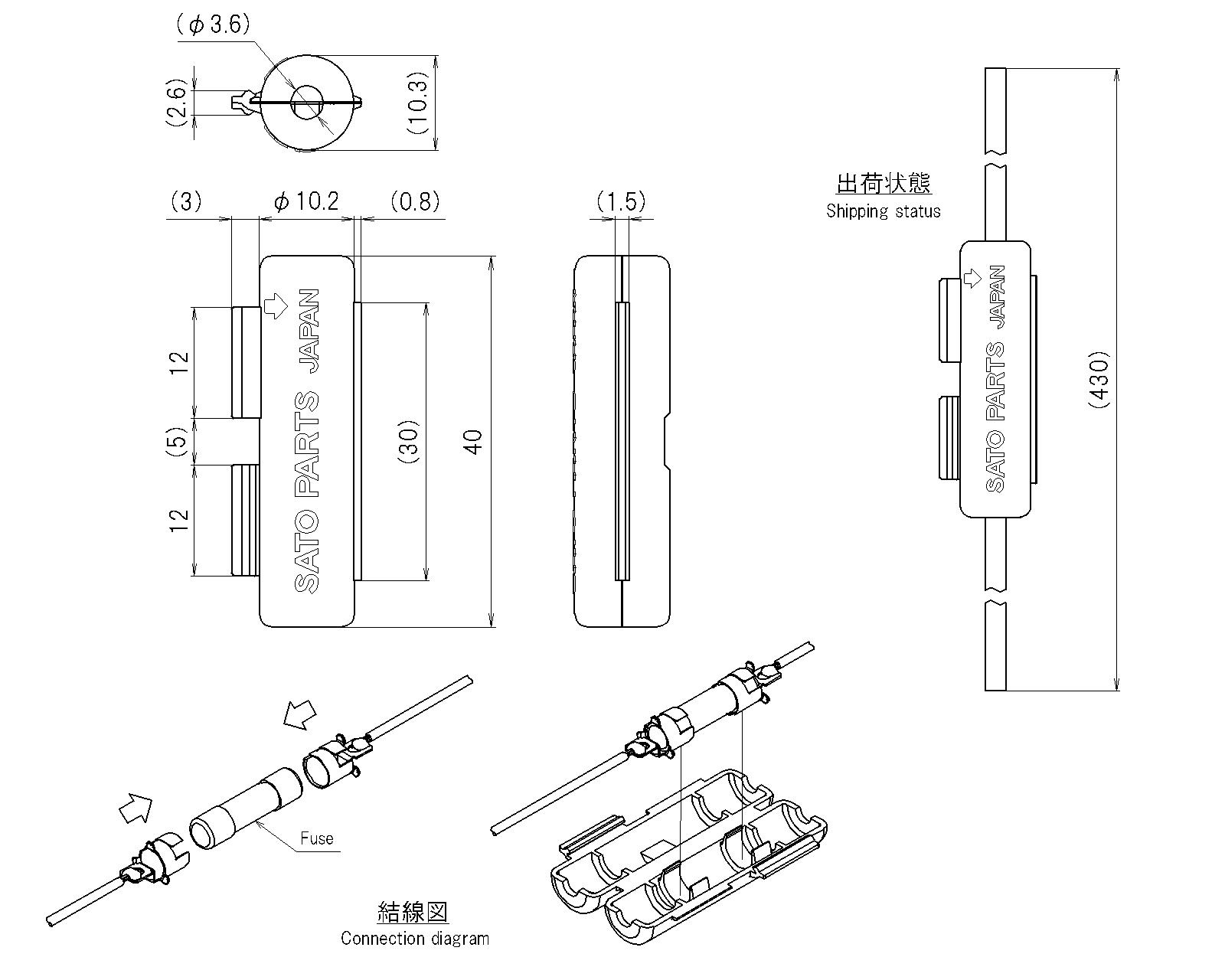 「カチッ」と開け閉めしやすいコンパクトな判子ケース型こんな場面で! 機器を追加したら回路保護しないと! ヒューズホルダーの取付スペースがない! 後付けで必要になった!■コイルスプリング不使用=電線張力に強い■安定した接触構造(金メッキ)●定格:250V-10A (感電の恐れがある機器外部では50V Max.)●絶縁抵抗:DC500V、100MΩ以上●耐電圧:AC2000V (1分間)●主絶縁材:ポリプロピレン (UL94V-0)●接続電線:1.25mm2以下、仕上り外径 3.2mm以下●本体色:GY(グレー)●注意事項①感電の危険がありますので電圧がかかった状態でヒューズホルダーを開かないでください。②ヒューズとの接触が不安定となり異常発熱・発火の原因となりますのでクリップは変形させないでご使用下さい。③はんだ付け作業はヒューズ管との接触部となるクリップ内側にフラックスが付着しない様に行って下さい。もし、付着した場合はアルコールでフラックスをふき取って下さい。④ヒューズ管の装着及びヒューズクリップの組込みははんだ付け後、製品が十分に冷めてから行ってください。⑤直射日光が当たる場所、屋外でのご使用は避けてください。⑥溶剤や油の種類によっては、製品に溶解が生じる場合がありますので十分ご注意ください。※写真はイメージです。※在庫切れの場合は別途御相談させて頂きます。
