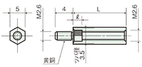 ●【本体】 材質:ジュラコン(POM)●色:乳白色●熱変形温度:1.82Mpa…110℃●UL規格:UL94-HB(材料)●【オネジ】 材質:快削黄銅(C3604BD)カドミウム含有量75ppm未満●処理:ニッケルメッキ(Ni) ●ネジ径 M=2.6 ピッチ 0.45●L=16