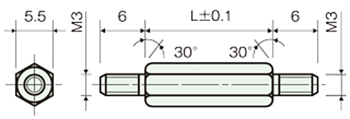 ●材質:快削ステンレス鋼(SUS303)●処理:脱脂 ●ネジ径 M=3 ピッチ 0.5●L=14