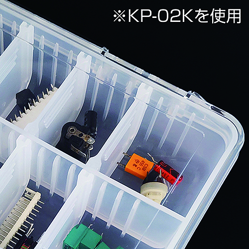 【特長】●軽量で耐久性に優れたパーツケース。●蓋は強度に優れたポリカーボネート。透明度が高く収納物の確認ができます。●仕切板は収納物の大きさに合わせて、3.2mmの刻みで細かく仕切りを調整できます。【用途】●電子部品などの収納、持ち運びに。【仕様】●外寸:205×145×40mm●内寸:196×40(×3)×35mm●重量:240g●付属品:仕切板(18枚)●材質:本体&仕切板/ポリプロピレン、蓋/ポリカーボネート※写真はイメージです。※在庫切れの場合は別途御相談させて頂きます。※RoHS証明は間接材としての使用に限ります。(証明対象は製品又は部品のみで包装材・ケース等は含みません)※RoHS対応状況:製品ごとに異なりますのでメーカーホームページより御確認ください。