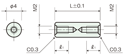 ●材質:鉛レス快削アルミ(CB156) 鉛含有量10ppm以下●処理:黒アルマイト(BAL)●ネジ径 M=2 ピッチ 0.4●メネジ取付長さ=5●L=15