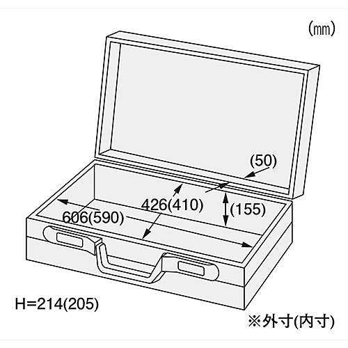 【特長】●アルマイト処理を施した1.5mmのアルミ製。●コーナー部をアルミサッシと金具で強化。●内装はメルトン仕上げ。【用途】●各種工具、機器の収納、持ち運びに。【仕様】●外寸:L606×W426×H214mm●内寸:L590×W410×H205mm●重量:6.2kg●付属品:カギ(2個)※写真はイメージです。※在庫切れの場合は別途御相談させて頂きます。※RoHS証明は間接材としての使用に限ります。(証明対象は製品又は部品のみで包装材・ケース等は含みません)※RoHS対応状況:製品ごとに異なりますのでメーカーホームページより御確認ください。