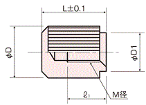 ●材質:快削黄銅(C3604BD)カドミウム含有量75ppm未満 ●処理:Niメッキ ●M径:M4●D-D1:10-8●メネジ取付長さ:8●L:20