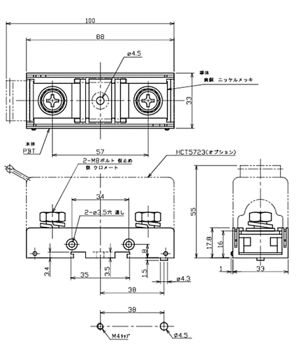 ●ホルダを使用することにより接続時や構造設計時に便利。 ●DINレール取り付けや直付けなどの取り付け方が選択可能。 ●太い配線ラクラク接続。 ●ボルト止めでガタつきの心配なし。