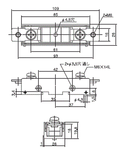●定格電圧:700V ●定格電流:75A ●適合電線:最大22mm²(M6) ●取り付け:DINレールおよび直付け ●材質:PBT ●ヒューズホルダは連続通電75Aまで ●速断ヒューズ660GH/750GH用 ●ヒューズとケーブルを個別で締結できるため、ヒューズ交換が容易です。