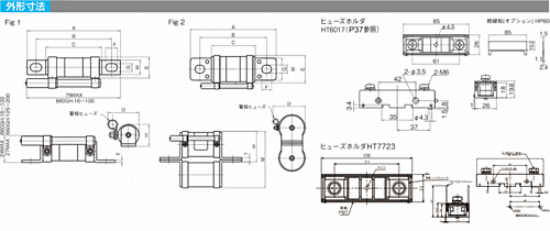 ・定格電圧:700V ・定格電流:75A ・適合電線:最大22mm²(M6) ・取り付け:DINレールおよび直付け ・材質:PBT ・ヒューズホルダは連続通電75Aまで