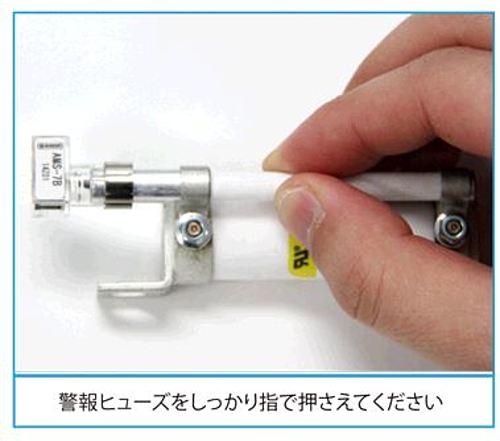 警報ヒューズをしっかり指で押さえながら装着してください。 警報ヒューズを押えず装着すると、「警報ヒューズが本体から抜ける」 「警報バンドが変形する]場合があります。