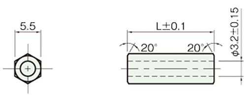 ●材質:快削黄銅(C3604BD)カドミウム含有量75ppm未満 ●処理:ニッケルメッキ(Ni) ●ネジ径:M3用●L:18