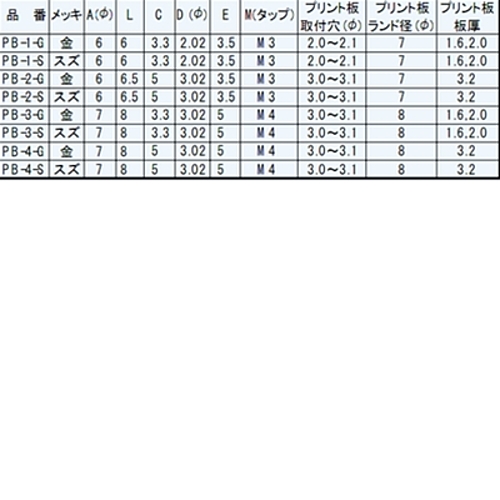 ・電源線を圧着端子でマザーボード等に供給する場合等に御利用下さい ・御使用はスルホール基板に限ります ・ランド径はPB-1、PB-2では7ファイ以上、PB-3、PB-4では8ファイ以上にして半田付は必ず部品面まであがるようにして下さい(締め付けトルク・・・6kg..f.cm以下) ・材質・・・・・・・・黄銅 ・処理・・・・・・・・G・・・・・ニッケル下地金メッキ S・・・・・ニッケル下地スズメッキ ・定格電流・・・・・・30A※在庫切れの場合は別途御相談させて頂きます。