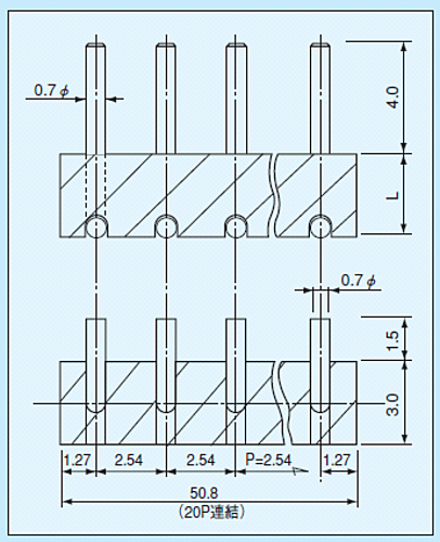 表面実装用基板対表面実装用基板を二段重ね(抜き差し型)(相手側ソケット品番PES-2)にする時に御利用下さい。表面実装用基板に取付けて、上にTH基板をつけて二段重ね(固定型)にもできます。材質 ・樹脂部 PPS黒色(UL94V-0)・ピン部 リン青銅処理 ニッケル下地金メッキ仕様・ピッチ 2.54mm・定格電流 4A・絶縁抵抗 500MΩ以上・絶縁耐圧 1000V AC,DC1分間・使用温度範囲 -40~+125℃実装時の御注意・長い連結数で御使用されリフロー時、樹脂部にソリが発生した場合、数カ所に接着剤をつけて下さい。※補足PES-2との組合わせで二段重ねする場合、位置決めピンのあるOVSシリーズを御利用下さい。(位置ズレが少なくなります。)※写真はイメージです。※在庫切れの場合は別途御相談させて頂きます。