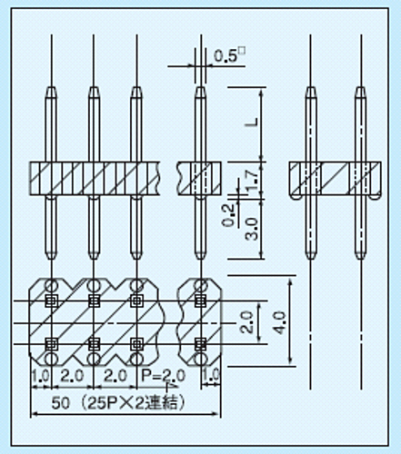 2mmピッチで連結されたタイプのラッピング端子です。材質・樹脂部 PPS黒色(UL94V-0)・金属部 リン青銅処理 ニッケル下地金メッキ 仕様・定格電流 3A・定格電圧 250V AC,DC・絶縁抵抗 500MΩ以上・耐電圧 1000V AC,DC1分間・使用温度範囲 -40~+125℃・プリント基板取付穴径 0.8~0.9φ※写真はイメージです。※在庫切れの場合は別途御相談させて頂きます。
