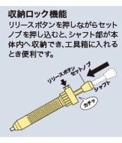 軽量・経済的でパワフル、強力な吸引力で溶解したはんだを吸い取ります。 セルフクリーニングシャフトで快適作業です。 仕様 ・質量 65g ・サイズ(mm) 275 ・シリンダ容量(ml) 15 ・ノズル穴径(mm) φ3.2 ※写真はイメージです。 ※在庫切れの場合は別途御相談させて頂きます。 ※RoHS対応状況:製品ごとに異なりますのでメーカーホームページより御確認ください。