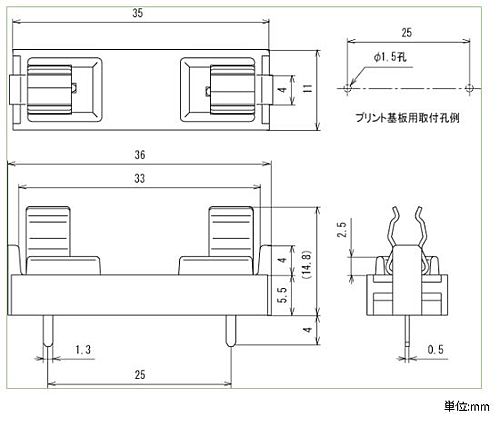 適合ヒューズ管:φ6.35×30mm、φ6.35×31.8mm(サトーパーツ製品はありません) 適合商品:FG‐20FG-30