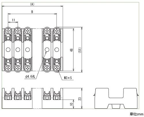 ■定格:250V-10A ■絶縁抵抗:DC500V、100MΩ以上 ■耐電圧:AC1500V(1分間) ■極数(P):2 ■主絶縁材:フェノール(UL94V-0) ■端子ネジ:M3×5(バインドネジ):締付トルク0.5N・m以下 ■端子金具:ネジ締付端子(M3) ■取付ネジ締付トルク:1.2N・m以下:M4ネジ ■本体色:B(黒) ※写真はイメージです。 ※在庫切れの場合は別途御相談させて頂きます。