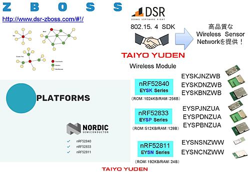 ■完全なIoTソリューション・スマートメッシュからモノが連携し動作する世界中で使用されている通信 ■低消費電力近距離無線通信規格でメッシュ構成を組むことができ、ひとつのネットワークで数百台以上のノードが存在する大規模なネットワークが構築可能です。 ■低消費電力&低速 消費電力が低いため乾電池などで数年オーダーの電池寿命を実現することも可能です。 消費電力を下げるために通信速度は低く抑えられています。 動画や音声の転送は難しいですがセンサーで取得したデータなど小さなデータの転送に最適です。 ■メッシュネットワーク メッシュネットワークを組めるため直接電波が届かないところへも間のノードを経由して通信を行ったり、あるノードが故障しても別のノードを経由して通信を行うことが可能です。 ■通信範囲が広い 低出力にもかかわらず数kmオーダーの通信距離を実現することもできます。 【DSR社と太陽誘電が提供するZigbee Solution】 https://e-junction.co.jp/share/DSRTAIYOYUDENプロモーション資料提出用20200831.pdf