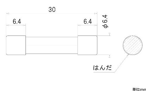 ■6.4×30mm B種普通溶断型 ■定格:AC-125V-4A ■定格しゃ断電流:500A ■取得規格:電気用品安全法(特定電気用品) ■主絶縁材:ガラス
