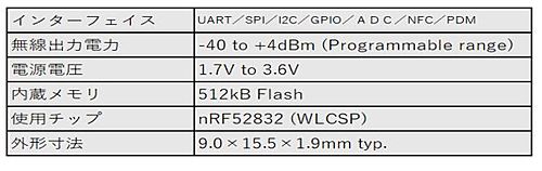 Bluetooth v5.0(シングルモード)、QDID:119069マルチプロトコルSoC Nordic nRF52832搭載高性能アンテナ内蔵合計26端子のGPIOを利用可能32.768kHzサブクロック内蔵実装方式:半田バンプ