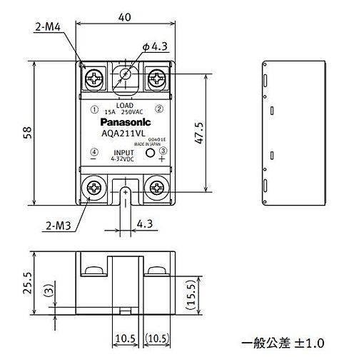 ●小型サイズ W40 × L58 × H25.5 mm ●安全面に配慮した端子カバー付き ( 出力側のみ ) ※入力側カバーもオプション対応可能です。 ●取り付けピッチ 47.5 mm ●外来サージ吸収に優れるバリスタ内蔵 ●動作確認が可能なLED表示付き