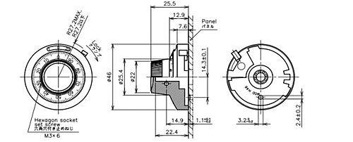 多回転型/手動設定用ダイヤル 多回転型ポテンショメータ:HP-18(別売)とセットでご使用ください。