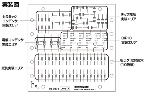 ●中央職業能力開発協会が実施している技能検定試験「3級 電子機器組立て(電子機器組立作業)」実技試験の練習ができる基板です。【特長】■技能検定用基板の材質、厚み、穴径、ランド形状を忠実に再現していますので、部品を用意するだけで実践に則した練習ができます(目標作業時間60~90分)。■各ランドからはパターンも引き出してありますので、より実践に近い練習ができます。■抵抗は一直線に並ぶので、リードの曲げ状態を比較できます。■角形チップ部品の取付用にX-Y方向を表記しています。■ラグ端子用の穴を設けているので、3mm板ラグをネジ止めすれば、「ひっかけからげ」の練習もできます。■お得な10枚パックも用意しています(MODEL CT-VAL3X10)【主な仕様】寸法:95×95mm 材質・板厚:紙フェノール 1.6t 仕上処理:フラックス仕上げ 穴径:基板固定穴 4個 (φ3.2mm)、板ラグ取り付け用穴 10箇所(φ3.2mm) 【はんだ付け可能な部品リスト】抵抗(15.24mmピッチ) : 20個 IC(DIP14ピン) : 3個 電解コンデンサ(2.54mmピッチ) : 4個 セラミックコンデンサ(5.08mmピッチ) : 8個 角形チップ抵抗(3225サイズ) : 13個 ラグ端子(φ3.2mm) : 10個 ※写真はイメージです。※在庫がない場合は別途御相談させて頂きます。※RoHS対応状況:製品ごとに異なりますのでメーカーホームページより御確認ください。