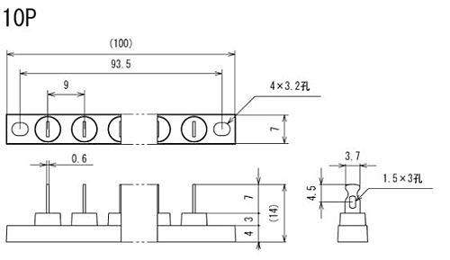 ■定格:125V-3A ■絶縁抵抗:DC500V、100MΩ以上 ■耐電圧:AC1000V(1分間) ■極数(P):5 ■主絶縁材:フェノール(UL94V-0) ■端子金具:ラグ端子 ■本体色:B(黒) ■取付方式:ネジ止め