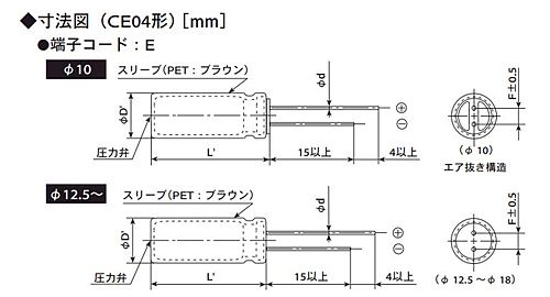 ●定格電圧範囲:350~450V、静電容量範囲:15~330μF。