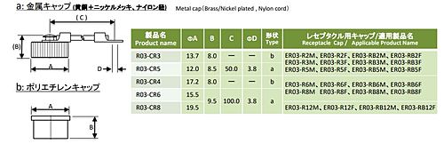 ●レセプタクル用キャップ ●ER03/R03シリーズ:6、8極用 ●R27シリーズ:12極用