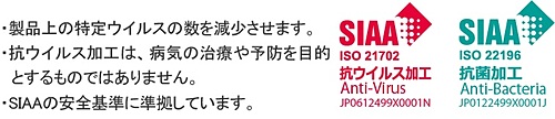 本製品のご購入に際して「誓約書」へのご記入が必須となります。また「誓約書」の内容確認後【注文】となりますので、予めご理解頂けますようお願い致します。 「誓約書」フォーマットはご注文後にメールで送付いたします。 必要事項をご記入の上、弊社担当者へ返信頂けますよう宜しくお願い致します。 不特定多数の人が触る、タッチパネルの表面に付着した細菌や特定のウイルスの増殖を抑制する抗ウイルス抗菌フィルムは、タッチパネルの操作面に貼るだけで 簡単に導入することができます。 FVフィルムシリーズはSIAA (一般社団法人抗菌製品技術協議会)により抗菌機能と抗ウイルス機能の認定を受けています。 *SIAAマークは ISO21702/ISO22196 法により評価された結果に基づき、抗菌製品技術協議会ガイドラインで品質管理・情報公開された製品に表示されています。 ※全ての細菌・ウイルスの増殖を抑制する物ではありません。