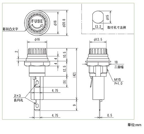 適合ヒューズ管:φ6.35×30mm、φ6.35×31.8mm(サトーパーツ製品はありません) 適合商品:FG‐20FG-30